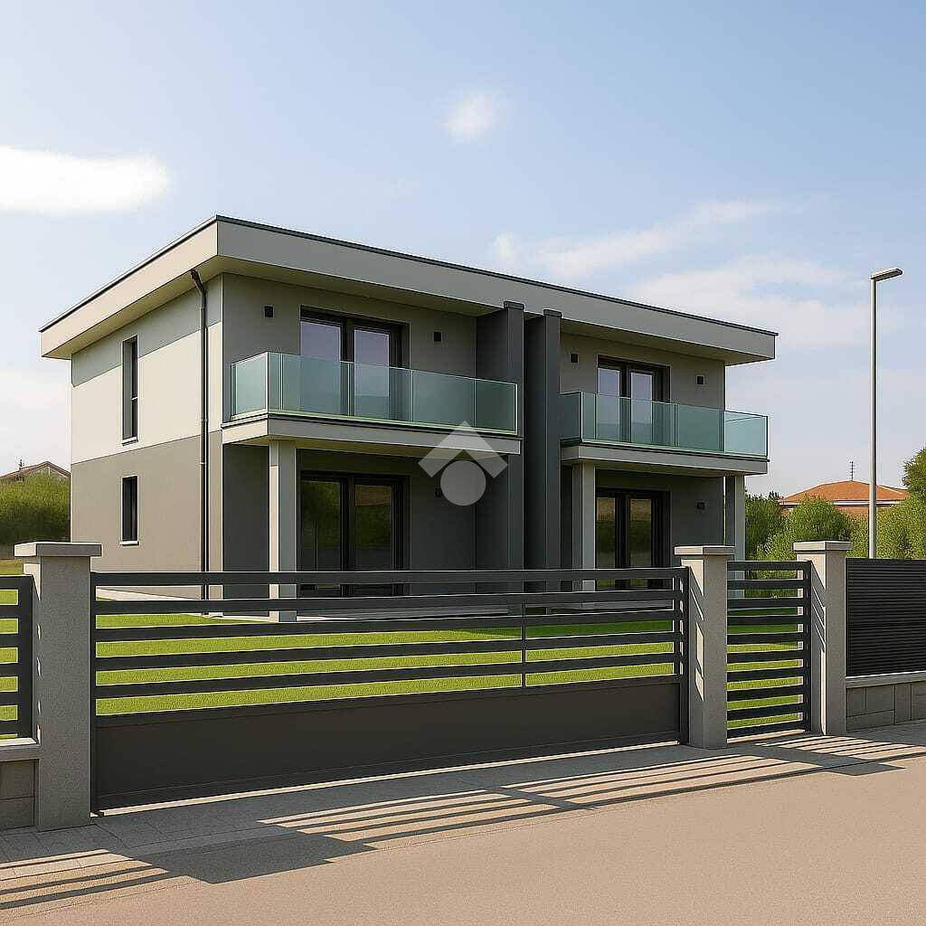 La soluzione presenta attualmente due appartamenti con ingresso indipendente di circa 117 mq commerciali ciascuno. C'e' la possibilita' sulla parte retrosante di ampliarli fino a 140 mq commerciali ciascuno.